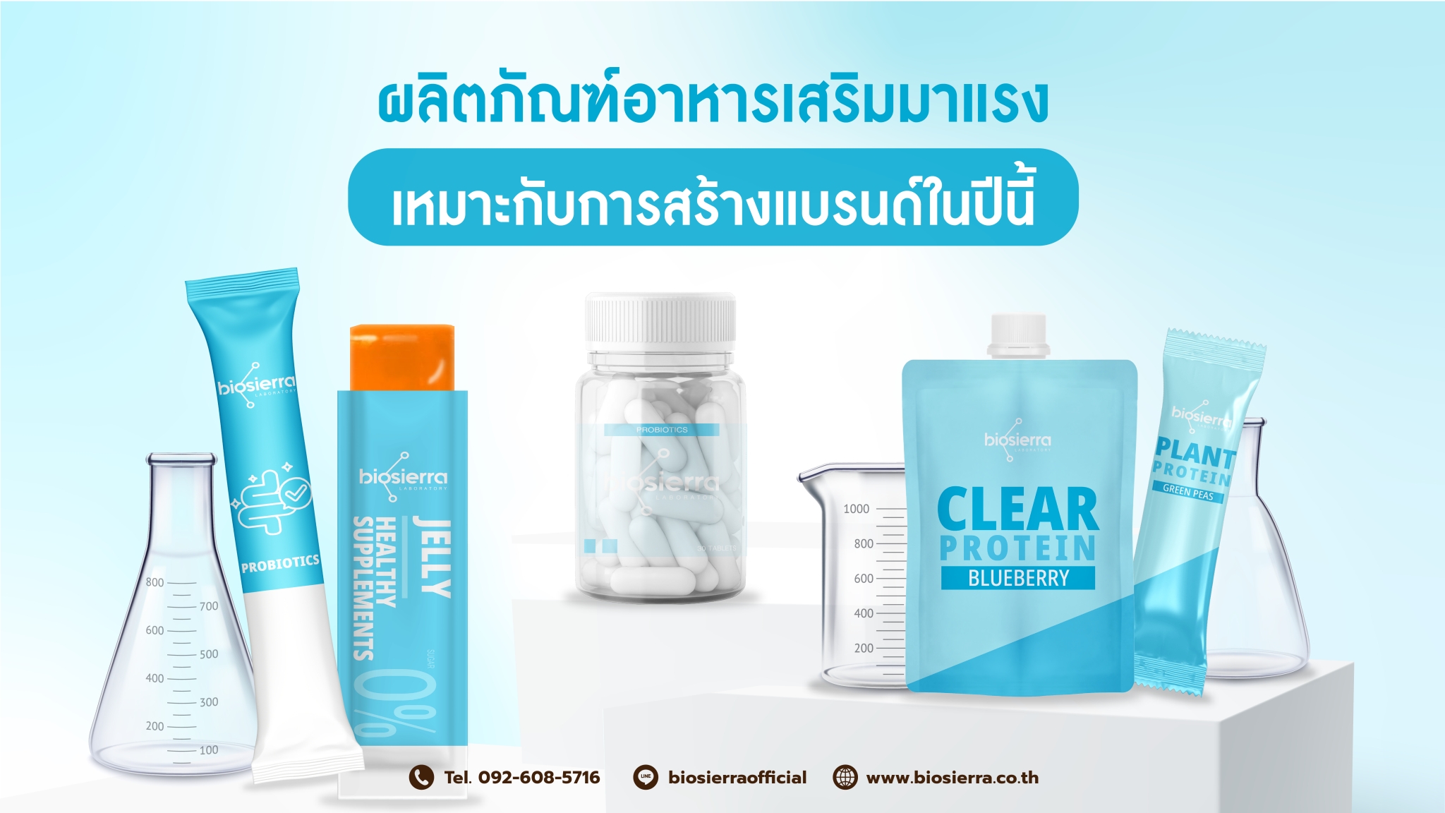 BioSierra มุ่งมั่นพัฒนานวัตกรรมการผลิตอาหารเสริมที่ดี มีคุณภาพ และปลอดภัยในทุกขั้นตอน ด้วยเทคโนโลยีทันสมัยและทีมวิจัยที่เชี่ยวชาญ เราคัดสรรวัตถุดิบระดับพรีเมียมจากแหล่งที่เชื่อถือได้ และควบคุมการผลิตภายใต้มาตรฐานสากล GMP และ HACCP อย่างเข้มงวด เพื่อให้ได้ผลิตภัณฑ์ที่มีประสิทธิภาพ เห็นผลจริง และสามารถแข่งขันในตลาดได้อย่างยั่งยืน พร้อมเป็นพันธมิตรทางธุรกิจที่คุณไว้วางใจได้