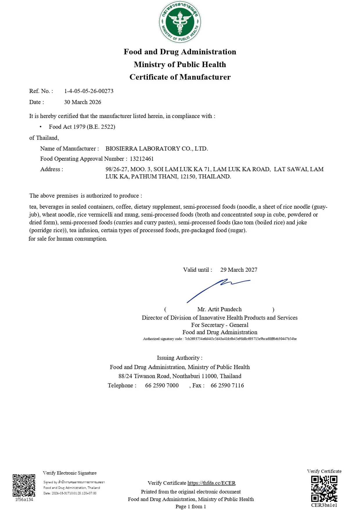 บริษัท ไบโอเซียร์ร่า แล็บโบราทอรี่ จำกัด